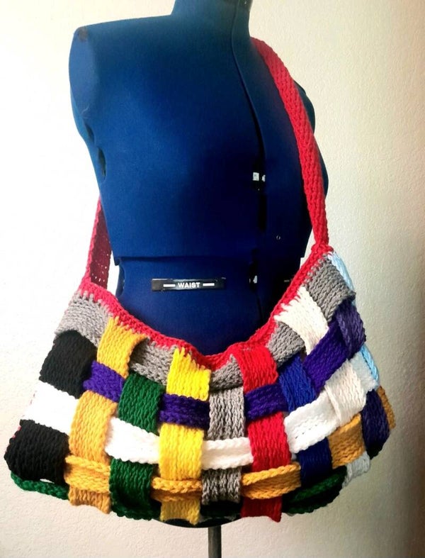 Handmade in California USA Only 1 Left 100% Acrylic yarn Stretch to fit Zip Closure Large Crossbody Bag One inside pocket Machine Washable Great for casual wear ,Festival and party events . A great gift that last many seasons